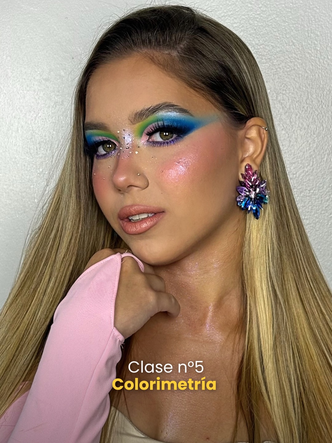 Clase teórica sobre teoría del color: tonos, subtonos y armonías cromáticas. Aplicación conceptual al maquillaje. Demostración de maquillaje full color con énfasis en técnicas de difuminado.